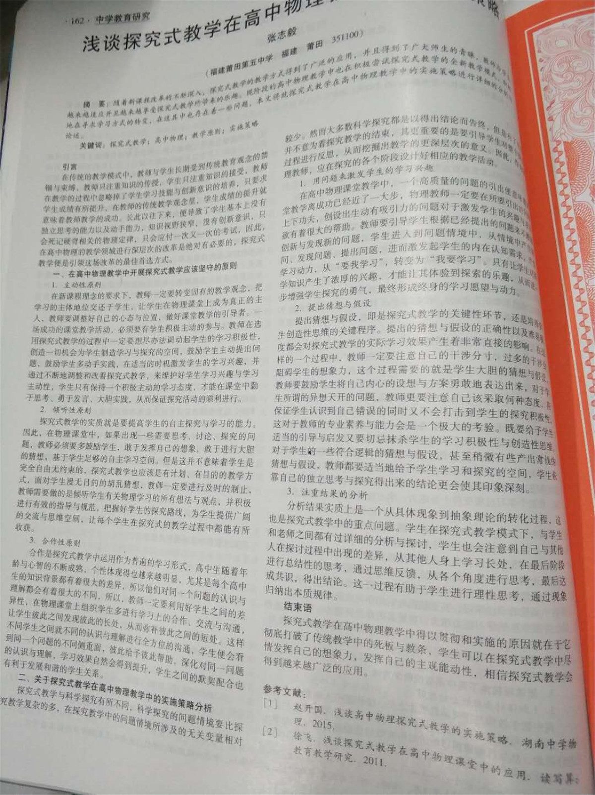 【CN论文】浅谈探究式教学在高中物理教学中的实施策略-物理组张志毅