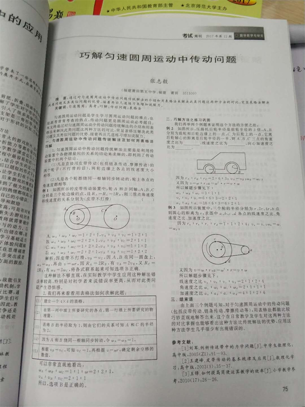 【CN论文】巧解匀速圆周运动中传动问题-物理组张志毅