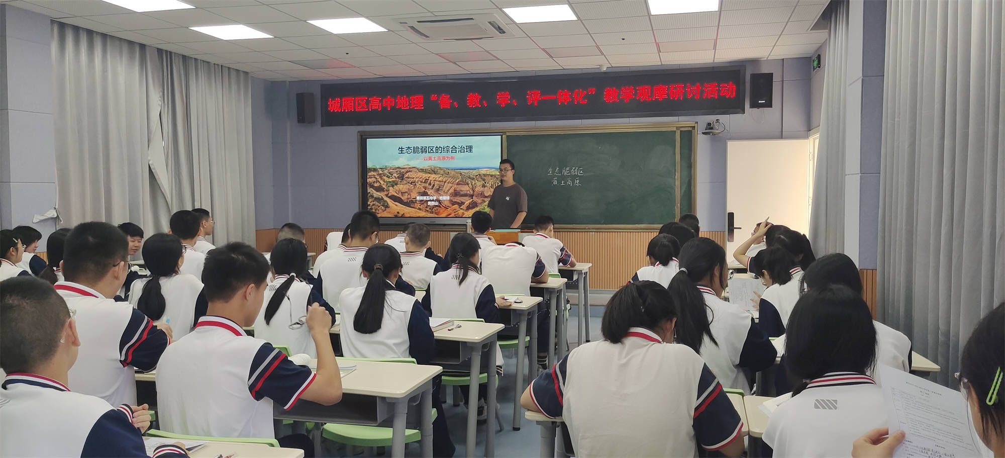 为了推动“备、教、学、评一体化”教研范式研究,以精彩教学启迪学生智慧,以优质课堂引领学生成长,提升新课程新课标实施水平,促进教师专业成长。5月9日上午,城厢区高中地理“备、教、学、评一体化”教学观摩研讨活动在莆田第五中学录播室举行。本次活动由城厢区高中地理兼职教研员吕志忠老师主持,全区各校高中地理教师参加了本次活动。