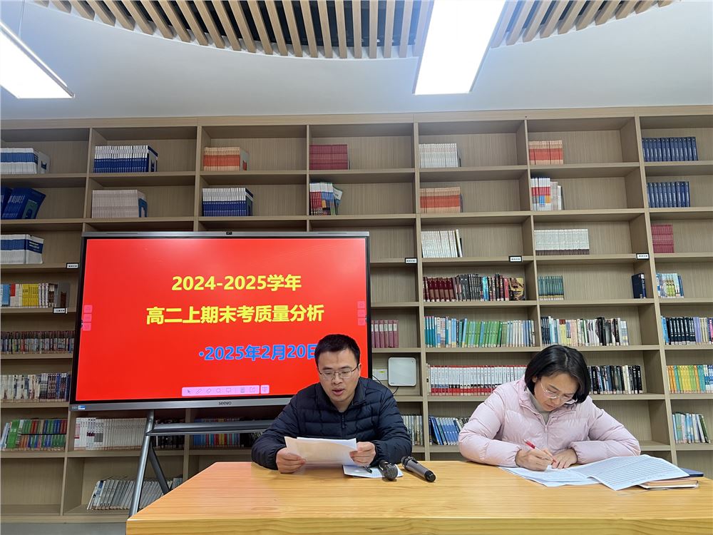 教以共进,研以致远;复盘反思,方能行稳致远!为进一步提高教学质量,深入剖析学情诊断情况,精准把握教学成效,全方位提升教学质量,2月20日下午,高二年段在校图书馆召开期末考质量分析会。会议由年段长李娟主持,副校长林建明及全体高二教师参会。